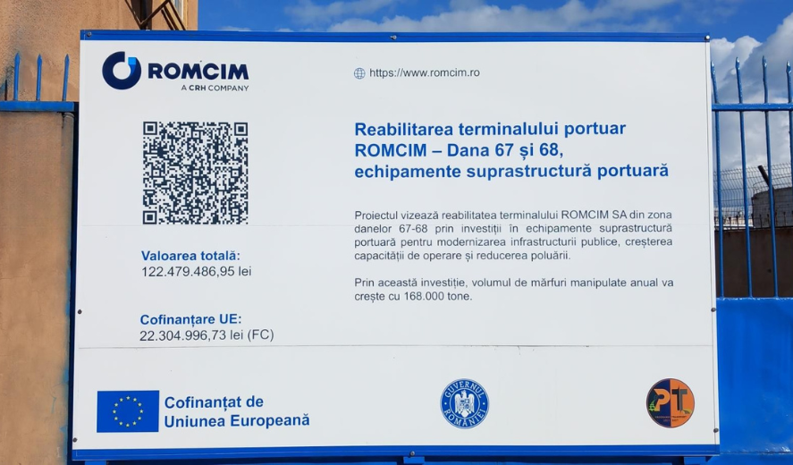 ROMCIM S.A., a obtinut autorizatia de construire nr. 591/05.08.2025 pentru lucrari ample de modernizare in zona Danei 68. Obiectivul investitiei este modernizarea platformelor portuare si a infrastructurii feroviare din incinta ROMCIM, instalarea unui cantar CF, realizarea a doua pasaje la nivel cu calea ferata, precum si construirea unui racord feroviar nou din linia 2 (Dana 67). De asemenea, proiectul include modernizarea si extinderea caii de rulare a podului incarcator, dinspre uscat. Investitia este realizata de ROMCIM S.A., in baza contractului de inchiriere nr. CNAPM-00840-IDP-01/15.10.2019, iar autorizatia are o valabilitate de 24 de luni, cu termen de finalizare pana la 5 august 2027.